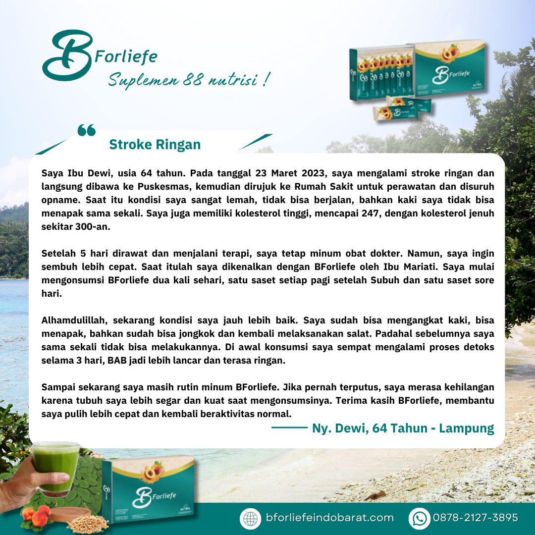 Melalui rangkaian testimoni, para konsumen berbagi pengalaman positif mereka setelah mengonsumsi BForliefe sesuai anjuran. Dari ibu rumah tangga, pekerja kantoran, hingga lansia, semuanya merasakan perubahan yang membuat hidup lebih sehat, produktif, dan bahagia.